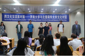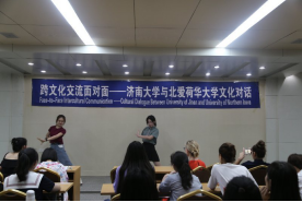 学生用流利的英文,配以制作精美的幻灯片为美国友人讲解了中国年轻人的人际交往方式、中华文化的独特魅力以及当代中国青年对于世界文化的积极态度。同时,北爱荷华大学的学生代表为我们阐述了新一代美国青年对于流行文化、亚文化的看法。随后,中方学生为大家演唱了歌曲《友谊地久天长》,美国少女Koro Michelle Castillo现场教学生们跳了美国社交通用舞蹈,洋溢着青春活力的动作配以充满节奏感的音乐,把现场气氛带到了高潮。通过这次研讨会,同学们开拓了眼界,了解了世界上不同国家的文化趋向,中国深厚的历史文化底蕴给美国学生带来了特别的知识体验,而美国的包容开放精神也使中国学生耳目一新。与此同时我们也看到了双方对于沟通交流的强烈愿望,这种愿望可以跨越国家和语言的障碍,直达每一个人的心灵深处。最后,主持人李雨涵总结发言,她表示虽然我们来自不同的国家,但是仍希望双方学生能够携手同心,为增强世界文化的多样性贡献自己的力量,共同创造一个精彩的未来。