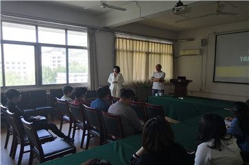 研讨会开始,范总为同学们介绍公司的岗前培训,一共分为行业知识培训、岗位知识培训、境外知识培训三方面,紧接着介绍到该公司的外联部、销售部、项目部三个团队,还有正在准备中的未知团队。之后,范总讲到“和合”体现在团队中要和谐相处,合作制胜;在对待客户方面要和气生财,合作共赢;在同行业中要和谐共进,通力合作。在互动方面,同学们提问范总关于客户源、公司的晋升空间、英语口语方面的要求以及工作多长时间可以转正等问题,几位对和合展览有限公司感兴趣的同学留下来面试,希望自己可以成为该公司的职员,在不断提高自己的同时也为公司做贡献。