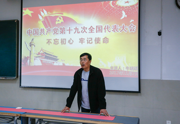 牛瑞斌书记紧紧围绕“不忘初心,牢记使命”这个主题,将十九大精神与学习实际紧密联系,深入浅出结合学生实际情况对十九大提出的新思想、新论断、新方略进行了解读。最后,牛瑞斌书记提出学习十九大报告基础在学,关键在做,青年学生要着力解决对未来憧憬与现在能力的不平衡,在学习上不忘初心,做社会主义事业可靠的接班人与合格的建设者。