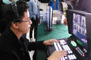 为了给同学们营造更加专业的学习实践环境,活动现场布置了传统的三机位EFP(电子现场制作)系统和虚拟演播室系统,并搭建了方便进行导播实践的小型舞台供师生操作演练。活动当中同学们参与热情高涨,积极踊跃地组成4人临时摄制小组进行现场导播演练,更有传媒14级学生关冬强、吴婷婷的歌曲助演为整个活动增色。本次实践教学活动打破常规教学模式,本着以人为本的教育理念,让学生真正参与到导播实践活动中,使师生们以最快捷、最经济的方式了解并体验前沿影视媒体技术和先进理念,拓宽了学生的专业视野,淬炼了学生的实践精神,激发了学生对专业技能学习的兴趣与热情,为学生的专业学习和实践创新奠定了基础。