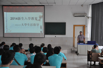 12日上午,大学生活指导在2教101举行。党委副书记王义作《怎样读大学》主题教育,从大学上了我、还是我上了大学、读书是为了承担责任、学会做人、学会学习、学会交往等五个方面和新生一起探讨大学生活应该如何度过,并作安全主题教育。辅导员武秀娟、戴静、杨倩老师分别介绍了校纪、资助、心理和科创等工作。