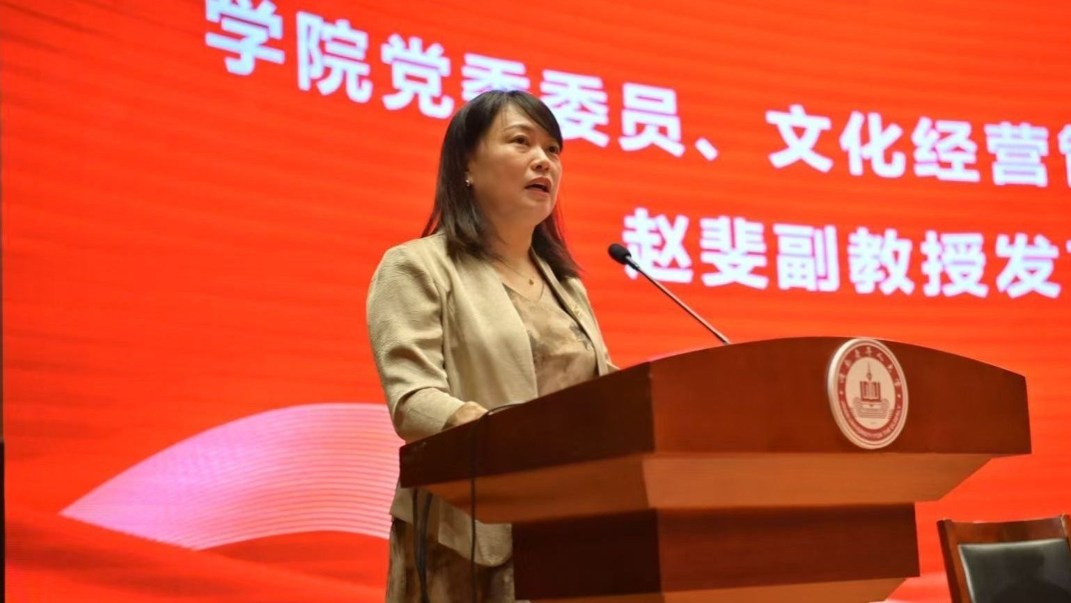 党委委员、文化经营管理系副主任赵斐老师作为教师代表发言,她表示,大学是探索知识、发现自我、塑造价值观的关键阶段。全体教师将恪尽职守,以精湛的学识、严谨的态度和温暖的关怀,做同学们学业上的引路人、成长中的知心友。她鼓励新生要知行合一、勤于思考、善于合作、积极实践,在知识的海洋中勇敢航行,找到属于自己的学术兴趣点。