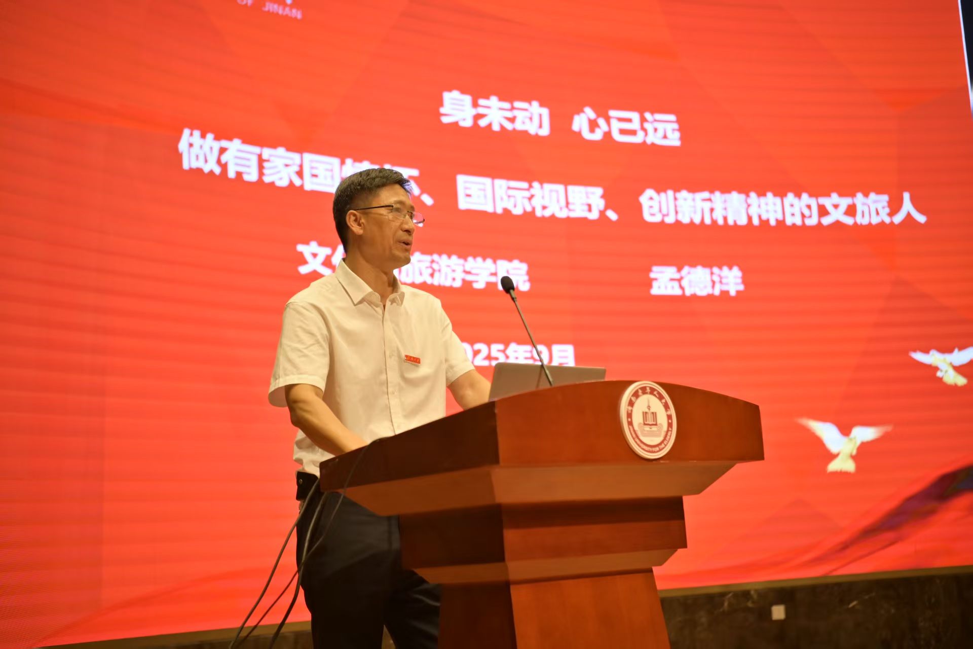在人才培养、科学研究、社会服务等方面取得的丰硕成果。他指出,当今时代,文化和旅游深度融合已成为推动经济社会发展的重要引擎,作为未来的文旅英才,同学们生逢其时,重任在肩。他勉励新生要尽快完成角色转变,树立远大理想,既要博览群书、夯实专业基础,也要勇于实践、拓展国际视野,努力成长为有家国情怀、有专业本领、有创新精神、有责任担当的高素质复合型文旅人才。