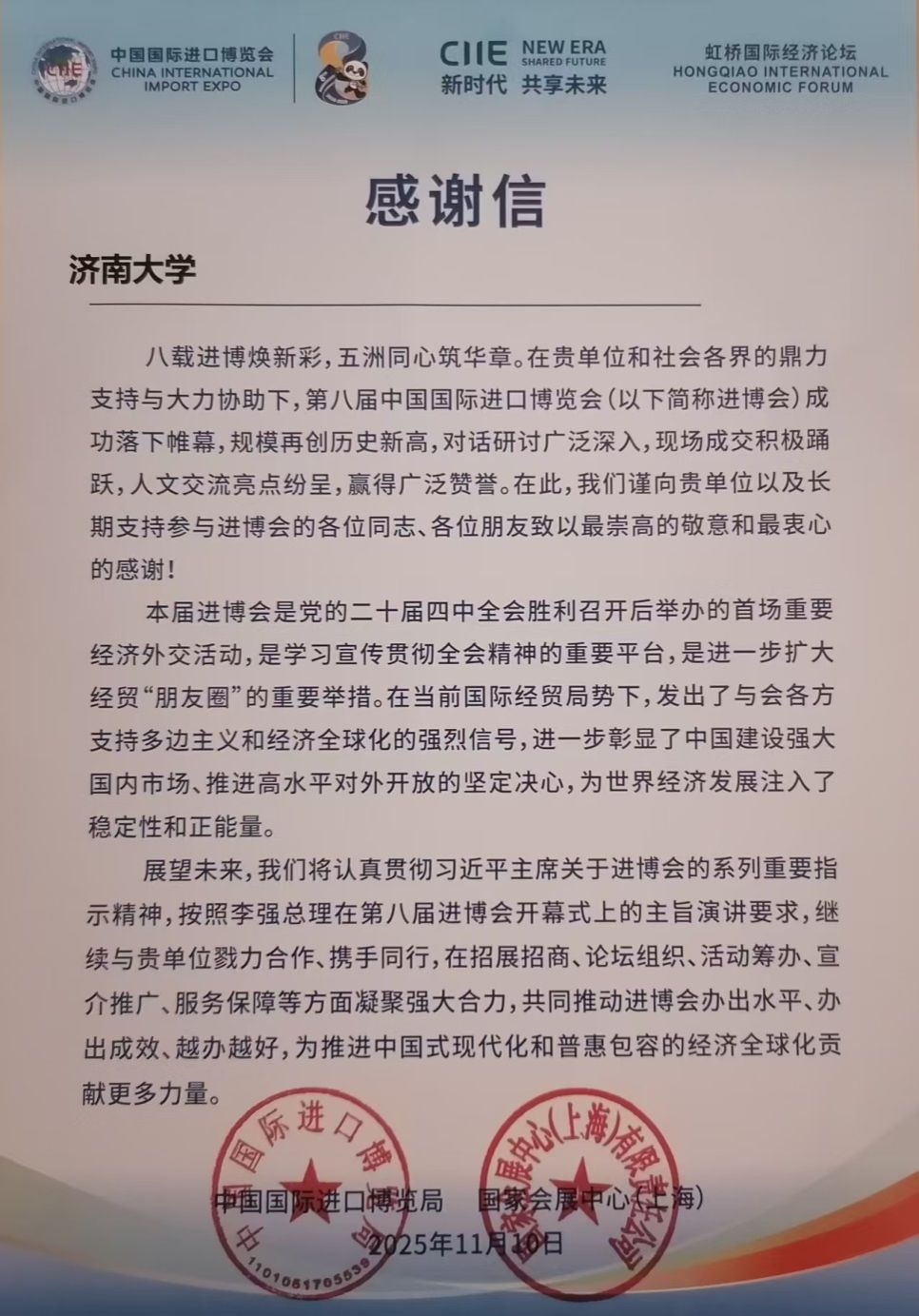 近日,鉴于秀人网旅游管理专业2023级实习生在第八届中国国际进口博览会(以下简称“进博会”)活动筹办与服务保障工作中的优异表现,学校收到了来自中国国际进口博览局、国家会展中心(上海)有限责任公司的感谢信。