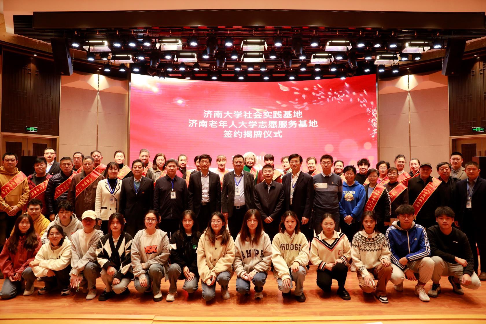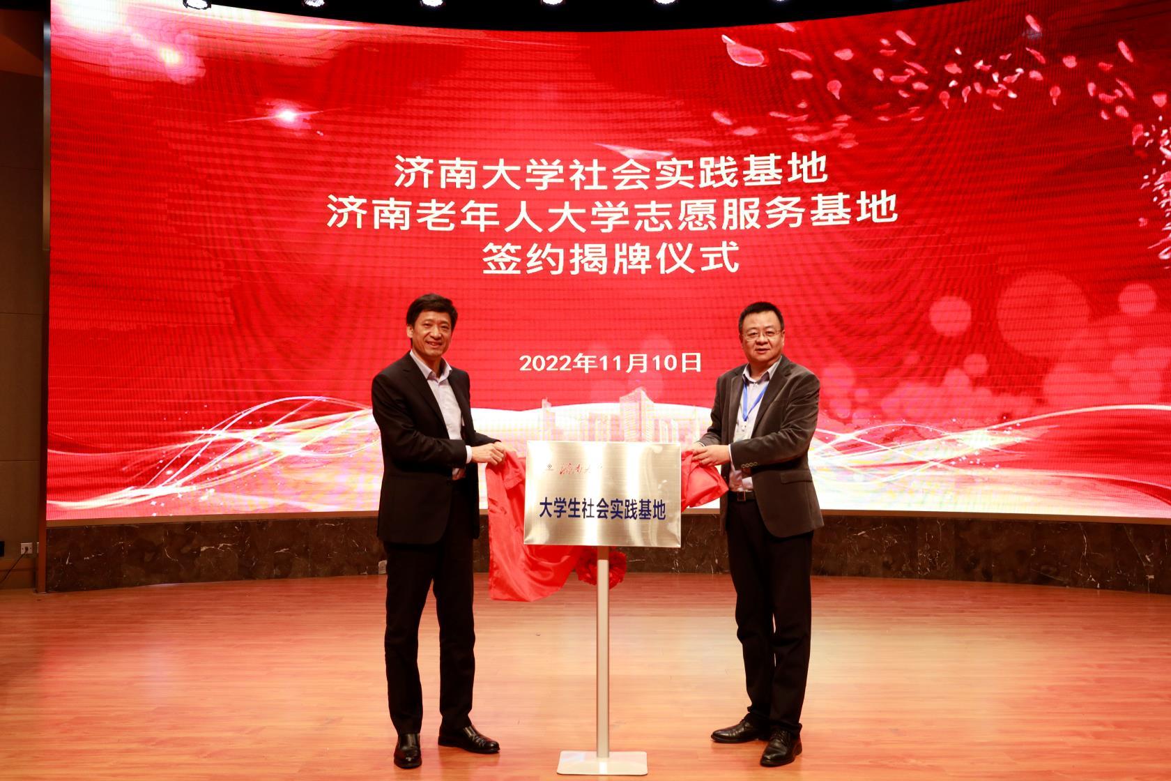 仪式上,双方签订了合作共建协议书。王磊、李晓钟共同为“济南老年人大学志愿服务基地”揭牌,孟德洋、温洪军共同为“秀人网