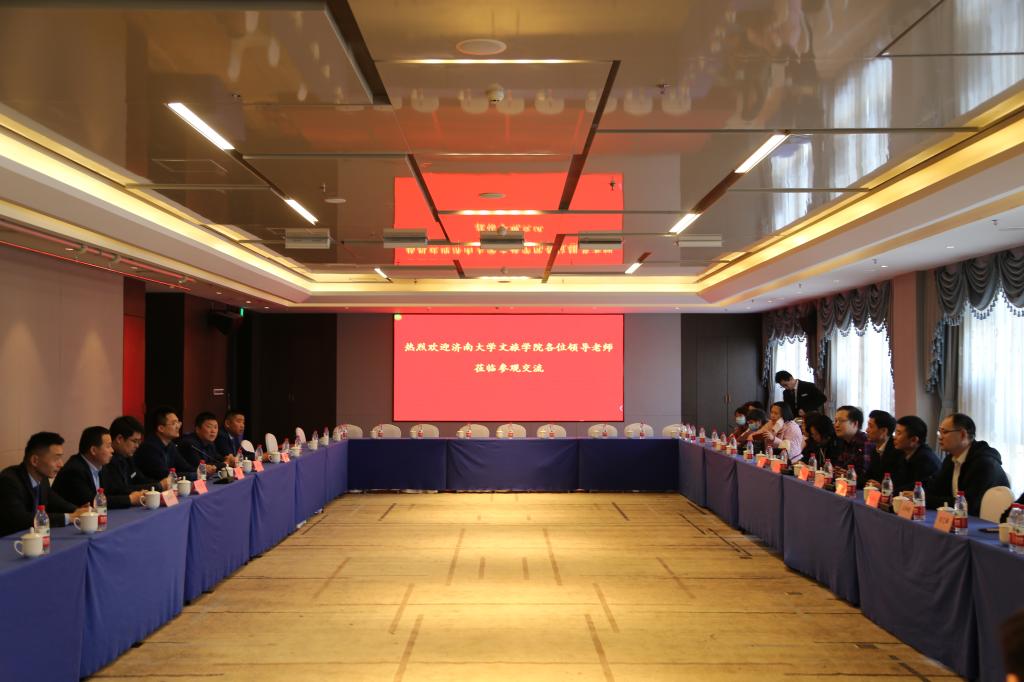 一行表示热烈欢迎,简单介绍了酒店运营和管理情况,以及旗下各分公司发展状况,希望通过这次交流活动,促进双方在学生就业、实习、研学等方面的合作,并希望双方在公司运营、管理等方面加强合作和交流。
