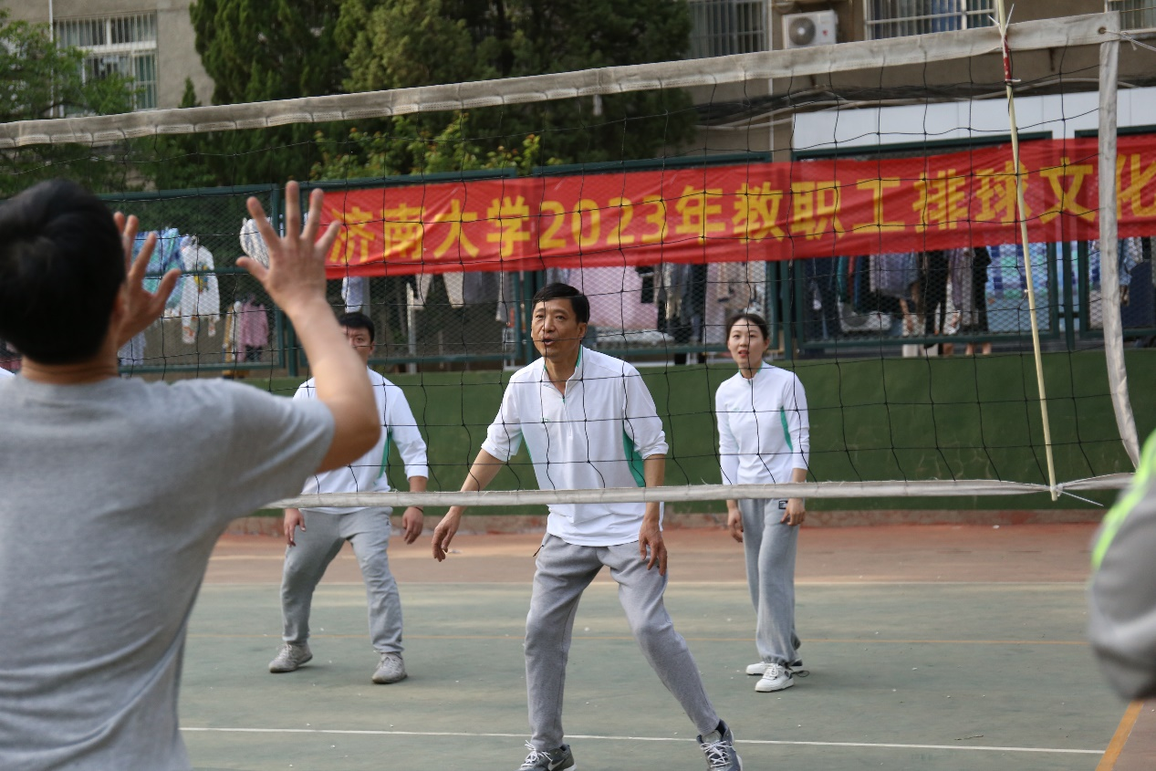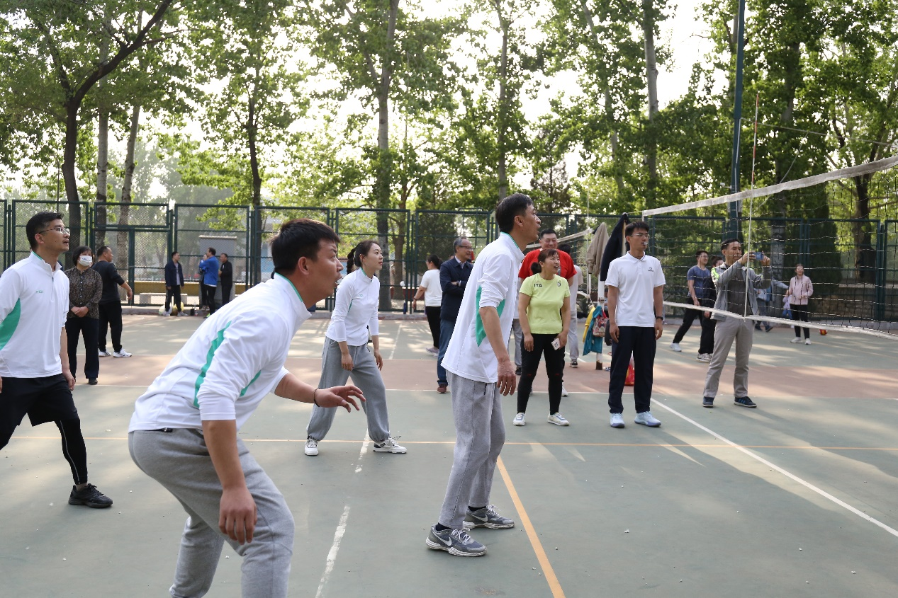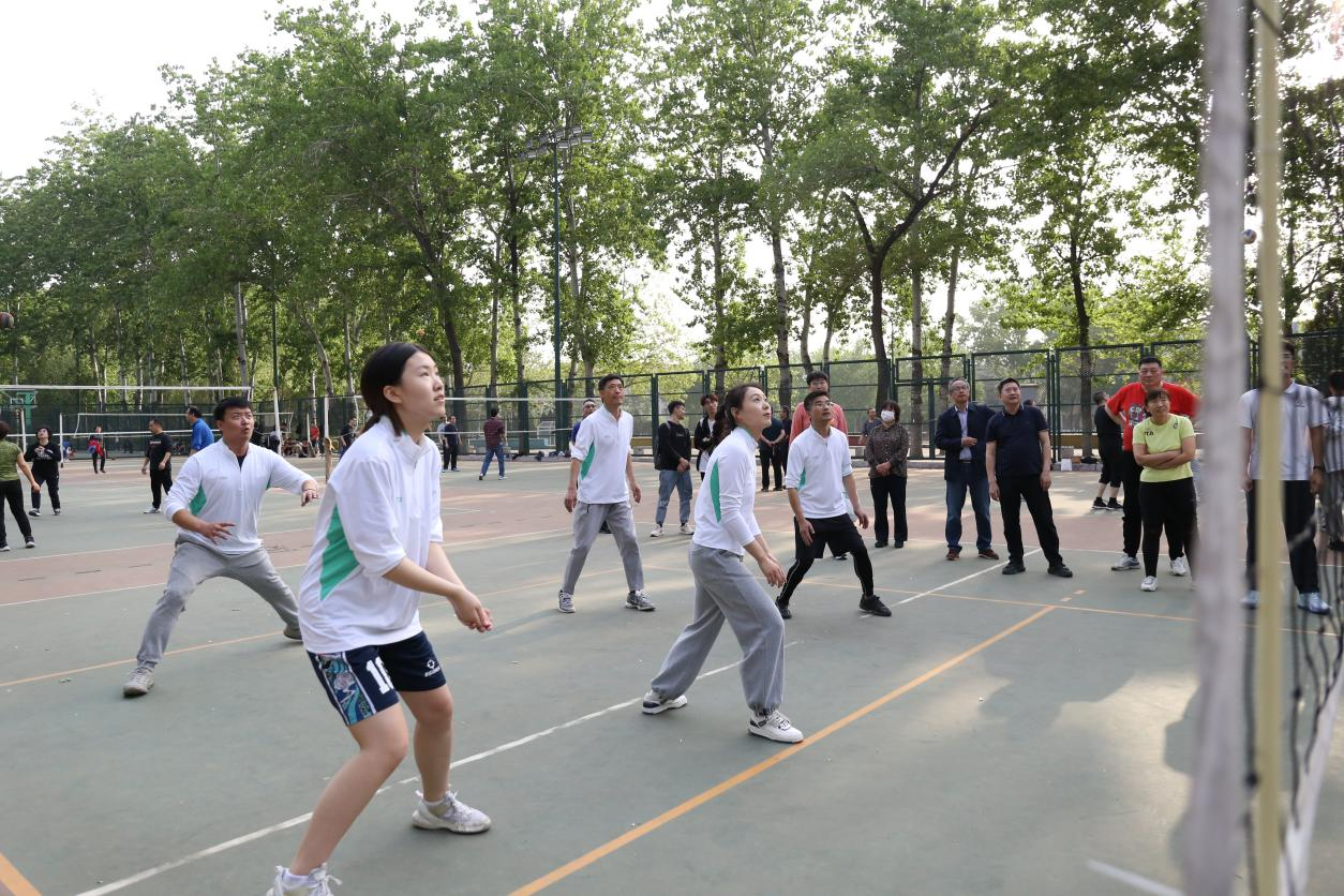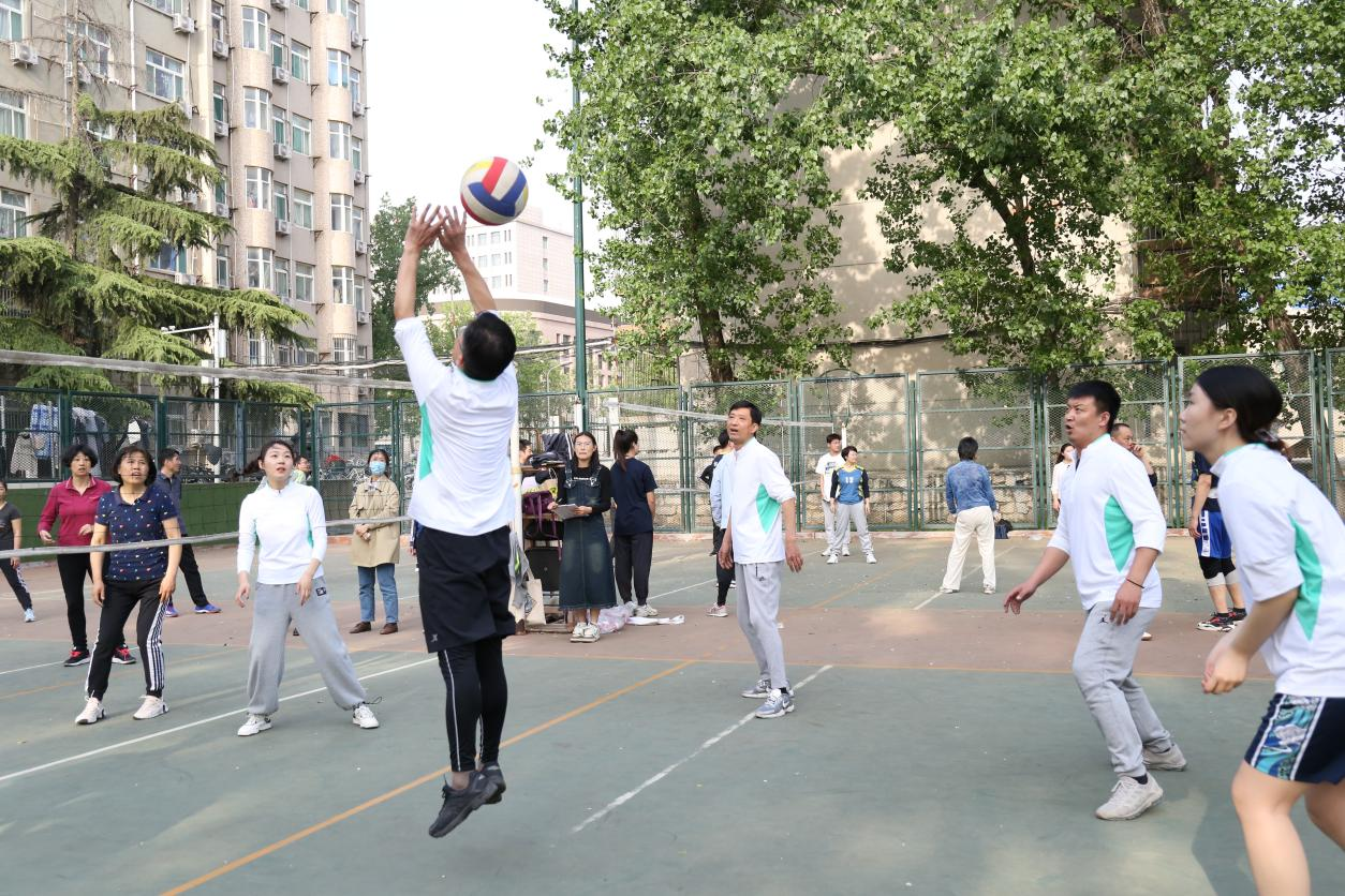 等进行了比赛。比赛过程中,球场老将们迅速进入比赛状态,认真研究战术,场上队员默契配合,场外师生鼓掌喝彩,这场精彩绝伦、酣畅淋漓的比赛感染着全场的观众,体现出可贵的团队精神,同时也展现出了教职工们追求更好更高更优秀的精神。奔跑、跳跃、垫球、传球……最终比赛在一片轻松愉悦的氛围中结束。