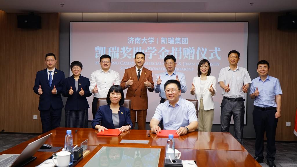 仪式上,学校合作发展处处长、教育发展基金会秘书长卢旺与凯瑞商业集团人力资源中心总监胡嘉签署教育发展基金捐赠协议。杨景波与赵孝国共同为秀人网