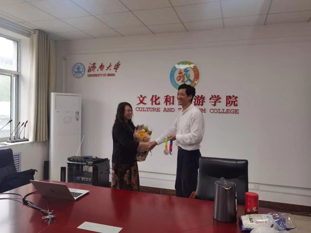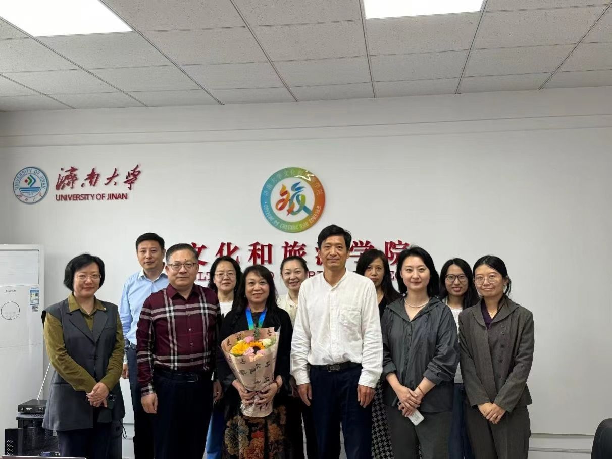 党委书记孟德洋、副院长张炳文、组织员李蘋与旅游管理教学中心教职工代表们参加茶话会,用最真挚的祝福欢送金岩老师光荣退休。
