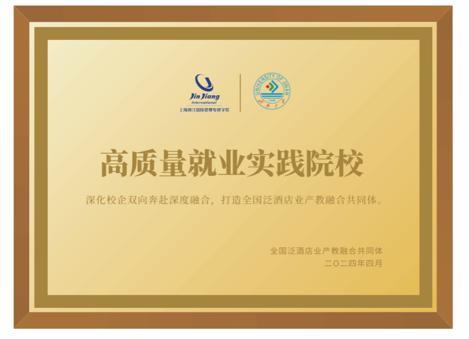 荣获全国泛酒店业产教融合共同体本科类高校“高质量就业实践院校”荣誉称号与奖牌。2023年度,我校文旅秀人网