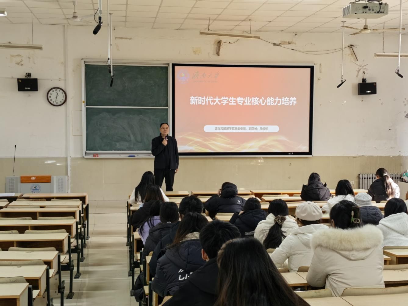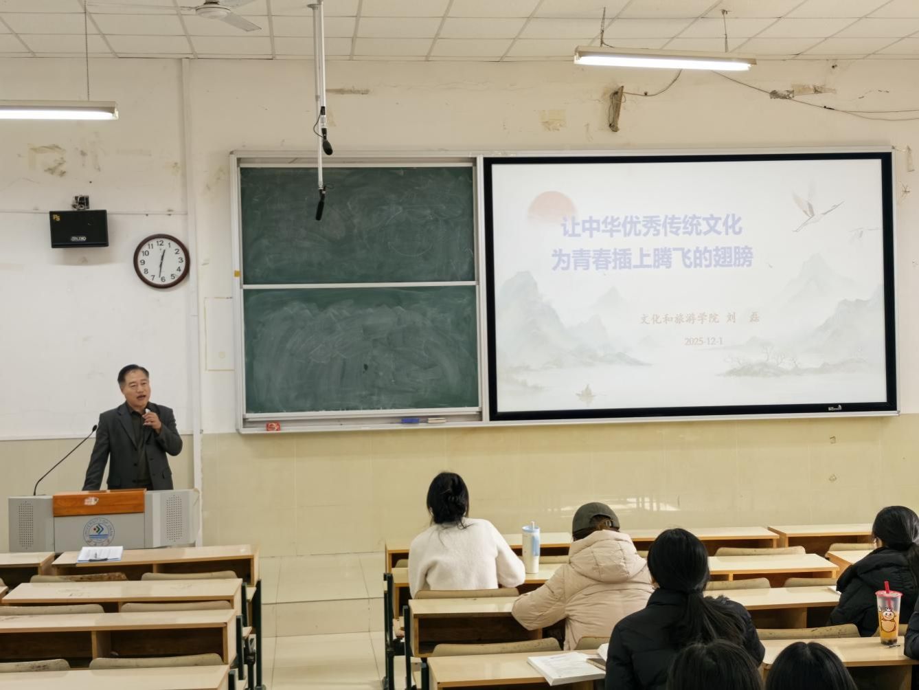 院长刘磊讲授了题为“让中华优秀传统文化 为青春插上腾飞的翅膀”党课。主要围绕中华优秀传统文化助力青年成长展开,阐释了传统文化与青春成长的内涵,结合二十届四中全会关于激发文化创新活力、建设文化强国的精神,与校园内传统文化的传承创新,提升大学生综合素质,为青年塑造健全人格、拓展思维视野、激发创新精神,为青春腾飞赋能。