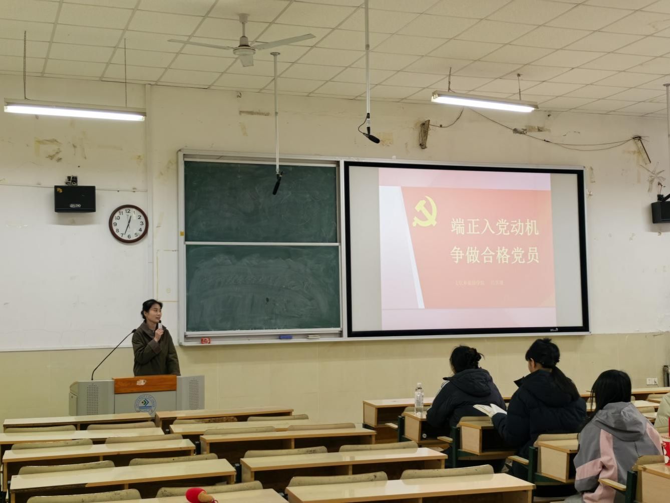党委副书记信苏珊围绕“端正入党动机、争做合格党员”为入党积极分子进行授课。从反面案例深刻剖析了大学生错误入党心态和因政治生活不成熟、就业竞争压力、社会转型价值失衡、家庭教育偏差等因素造成不正确的入党动机;同时帮助大学生正确认识和践行党员标准,自觉加强党性修养,成为社会主义事业的建设者和接班人。