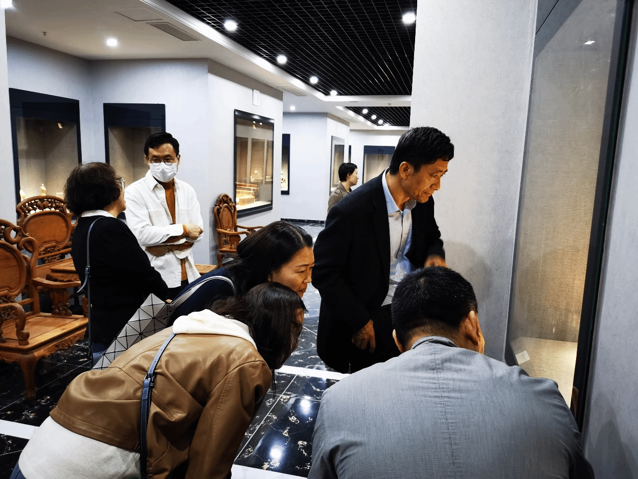 华翌贞藏博物馆是一家私人博物馆,始建于2010年,馆藏面积1200平方米,馆藏文化万件以上,致力于打造省内首家“学校博物馆”,通过“走出去 引进来”的方式把展览送进学校,送到孩子们身边。馆内陈列着丰富的文物展品,每一件都承载着深厚的历史底蕴和文化内涵。这些文物历经岁月沧桑,依旧闪耀着历史的光辉。同志们在馆长廖华南、运营总监韩娟的讲解与陪同下,依次参观了书画长廊、文房厅、瓷器厅、玉器厅、精品厅和杂项厅六个展示空间,不时驻足观看、交流心得。孟德洋表示,通过开放展览、学生研学、学术研究、文创产品等多元方式,深入挖掘文物价值,让它们在现代社会中焕发新的生机与活力,充分发挥“一个博物馆就是一所大学校”的作用。
