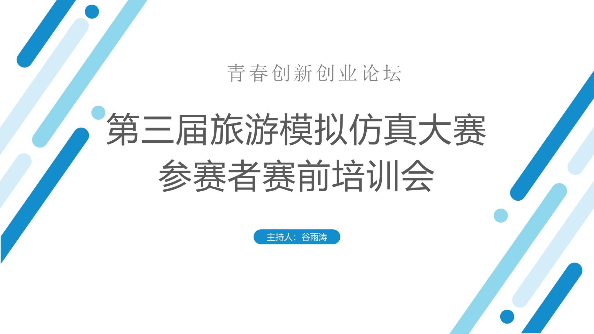 2024年5月27日,秀人网 举办青春创新创业论坛——第三届旅游模拟仿真大赛参赛者赛前培训会。该活动于19:00在D3J201举行,主持人为创新创业部谷雨涛同学。
