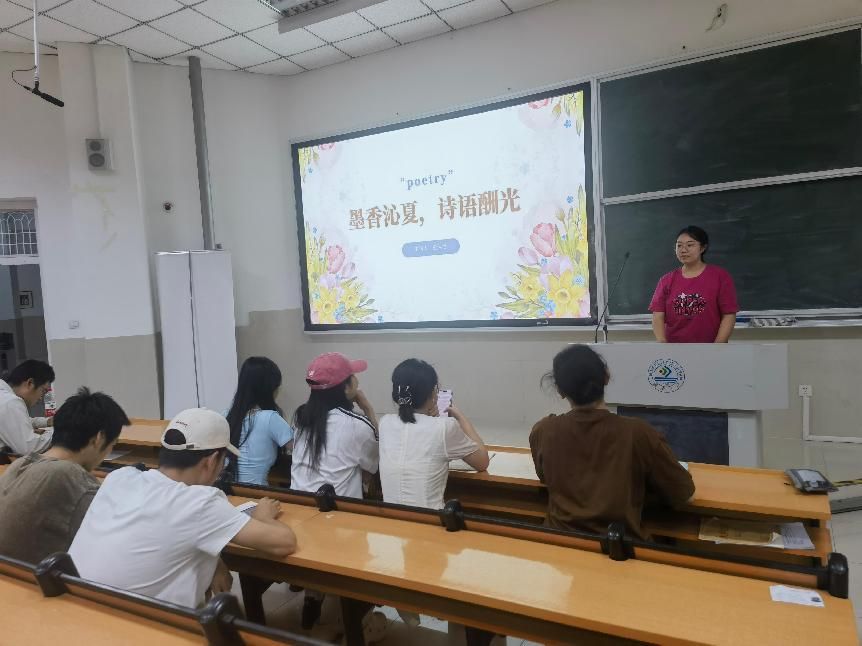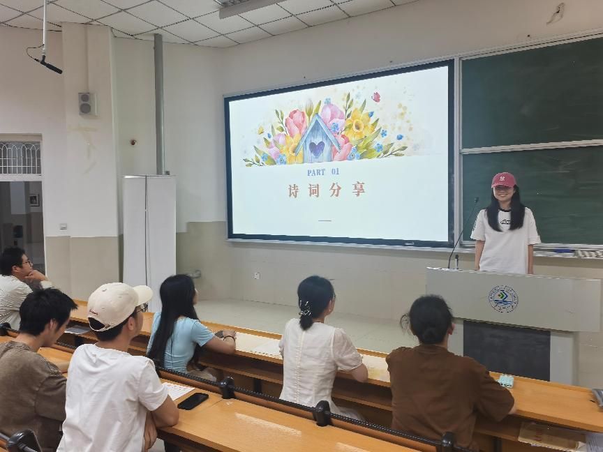 活动前期,同学们认真搜集准备关于夏天的诗词,并练习朗诵。活动当天,同学们先依次上台分享自己搜集到的关于夏日的诗词,进行朗诵,并挑选出自己最喜欢的句子与同学们一同赏析讨论。在此之后,同学们进行现场创作,用自己熟悉的形式撰写一首关于夏日的诗词,并进行现场分享交流。徐岩同学表示:“这次活动让我领略到诗词的无穷魅力。作为青年学生,我们应当传承经典文化,以诗为媒,用诗歌的力量传递美好,带动身边更多人感受传统文化的博大精深。”