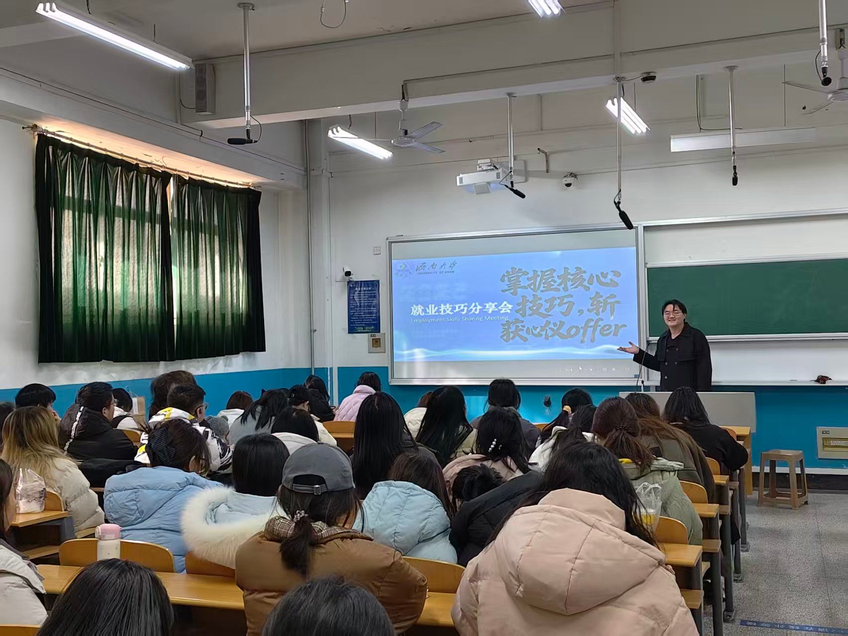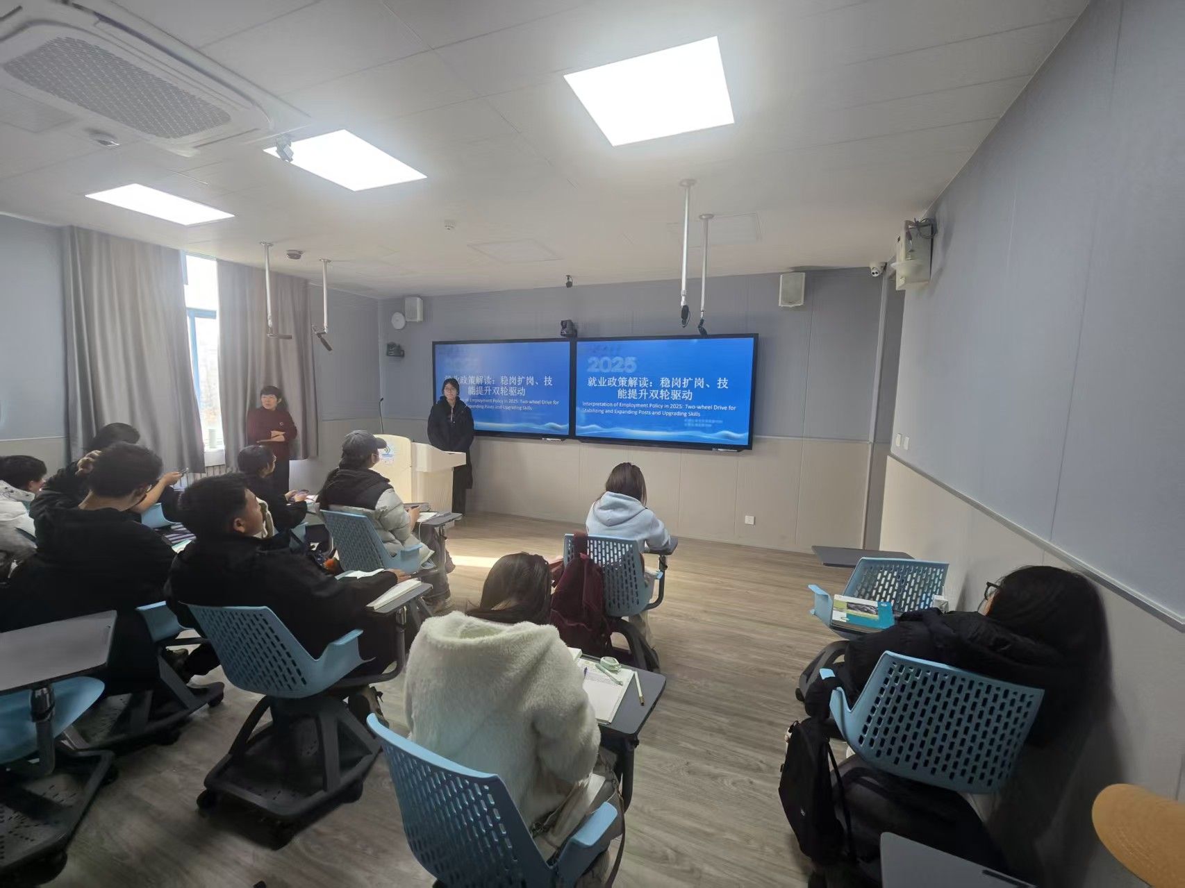 举办“新时代就业机遇与挑战”主题就业指导活动,围绕形势展望、政策解读、技巧分享与AI应用四大模块展开指导。