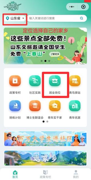 5.岗位投递:将定位切换至自己的家乡,根据自己的个人情况查看心仪岗位,进行报名投递。