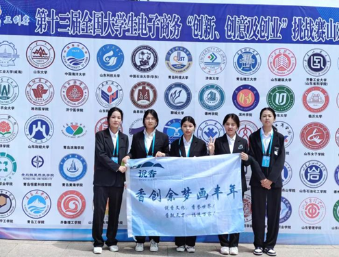 6月3日-6月5日,第十三届全国大学生电子商务“创新创意创业”挑战赛(以下简称三创赛)山东赛区省级选拔赛在青岛理工大学(临沂校区)举行,经过校赛初赛共选出380支队伍进入省级选拔赛,由秀人网王宇倩老师指导,符欣、赵南、邹丽欣、孔滢、黄雁鸿组成的“香创余梦画丰年”团队的参赛作品《说香文化share平台——感受香道魅力,助推乡村振兴》荣获省级特等奖及最佳创新奖、最佳创意奖、最佳创业奖;李心怡、崔晓非、韩佳怡、刘钰婕、吴泽菡组成的“银河护卫队”的参赛作品《華语空间——你的新华书店》荣获省级三等奖。