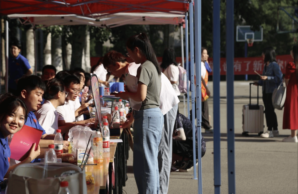 报道点、教学楼、宿舍楼、校园餐厅,随处可见他们忙碌的身影,让每一位报到的新生倍感温暖。