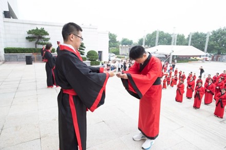 学生参加了由山东省文化馆举办的“中华传统敬师礼仪活动”。