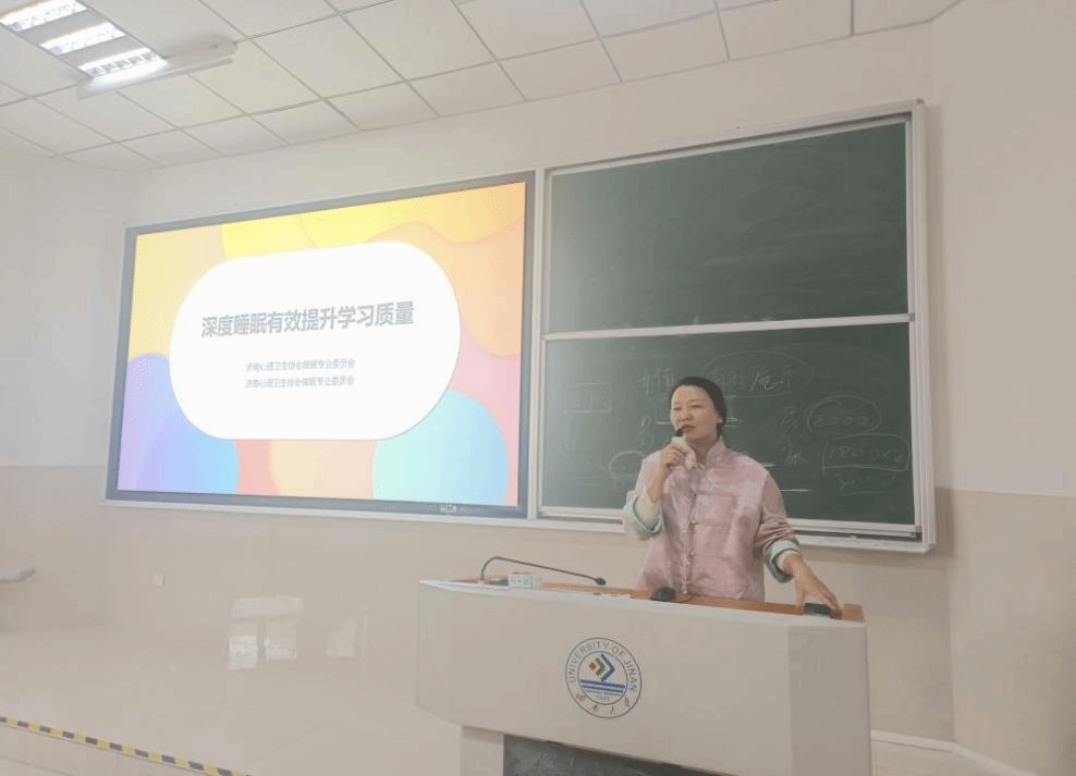 举办了一场以“健康睡眠有效提升学习质量”为主题的知识科普讲座。讲座邀请了济南老年大学关工委副主任、志愿服务团团长张建军老师与济南心理卫生协会催眠专业委员会副主委尹晓丹老师担任主讲嘉宾,吸引了众多师生的积极参与。