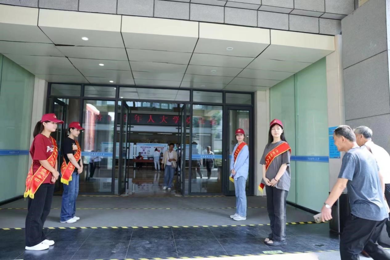 的志愿者们分列在大门口的两侧,欢迎每一位踏进大门的老年学员,为他们提供引导咨询等志愿服务。在志愿者的引导下,每位学员都顺利来到大厅准备自己的节目。在现场,志愿者们还和老年学员们进行交流,了解他们的需求,为他们提供个性化服务。大学生服务志愿者丁珂、刘子暄、赵小淼、骆敬茹表示,能够有机会回报社会、奉献社会,他们感到非常自豪。