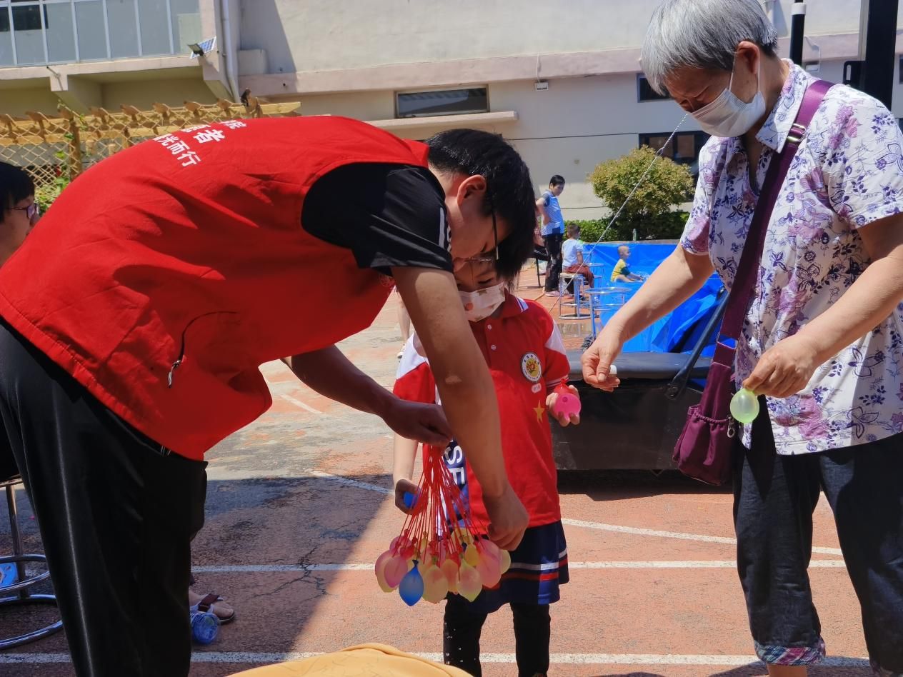 在活动现场,志愿者与基地老师紧密合作,精心布置了嬉水场地。他们搭建泳池布,给水池注水,并为孤独症儿童分发水枪、雨衣等玩具。一声哨响,第一道水花扬起,整个场面立刻沸腾起来,孤独症儿童迫不及待地冲向各自想玩的区域,一支支水枪“火力全开”,志愿者陪着孩子们在水中嬉戏玩耍,细心地照顾着孩子安全,部分志愿者则和孩子们一起分享玩具,用温柔的话语和他们交流,鼓励他们勇敢尝试,整个操场成了一片欢乐的海洋。志愿者毕海霞同学表示,当看到孩子们脸上绽放的笑容,她感到一切的付出都是值得。