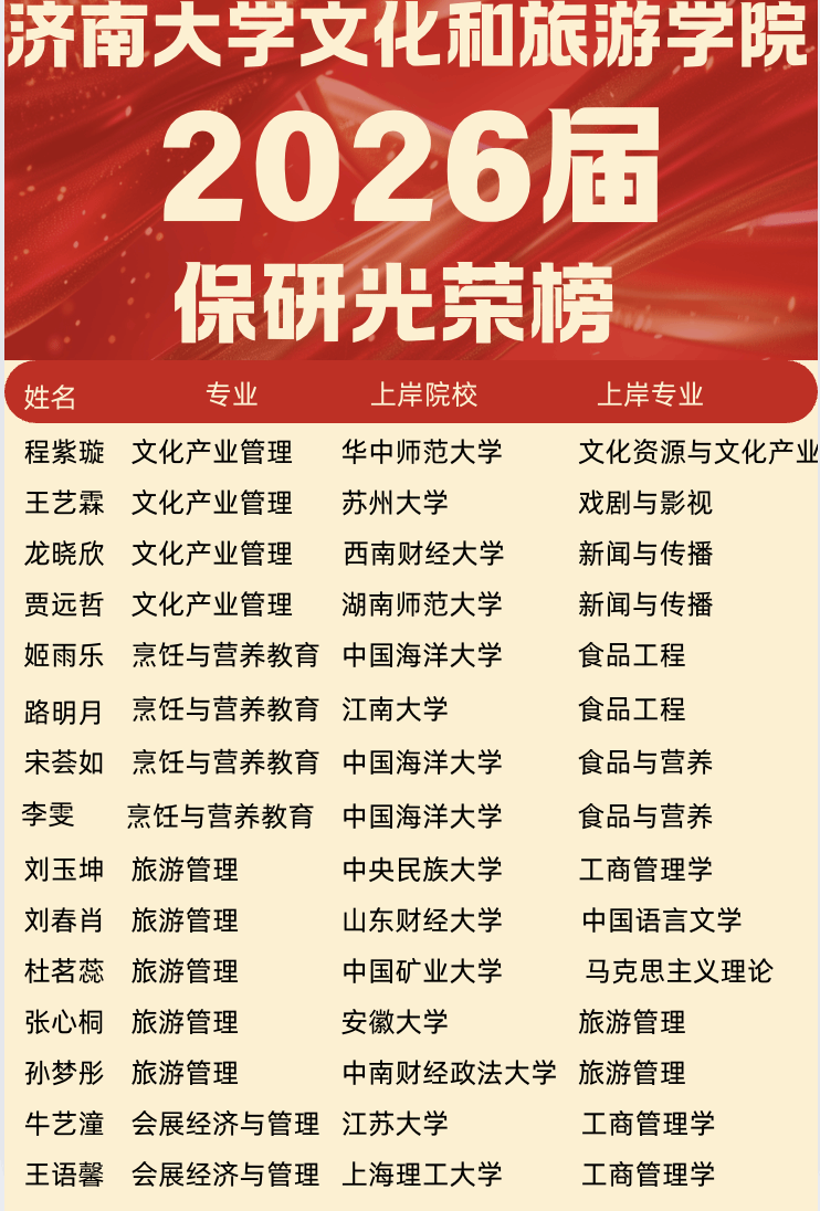 秋风送爽,捷报频传。秀人网 多位学子凭借优异表现,成功获得硕士推免资格,即将开启新的学术征程。 这份保研荣誉榜,是学子们奋斗的见证,更是秀人网 育人成果的生动彰显,为学弟学妹们树立了奋进榜样,也激励着更多文旅学子逐梦前行!